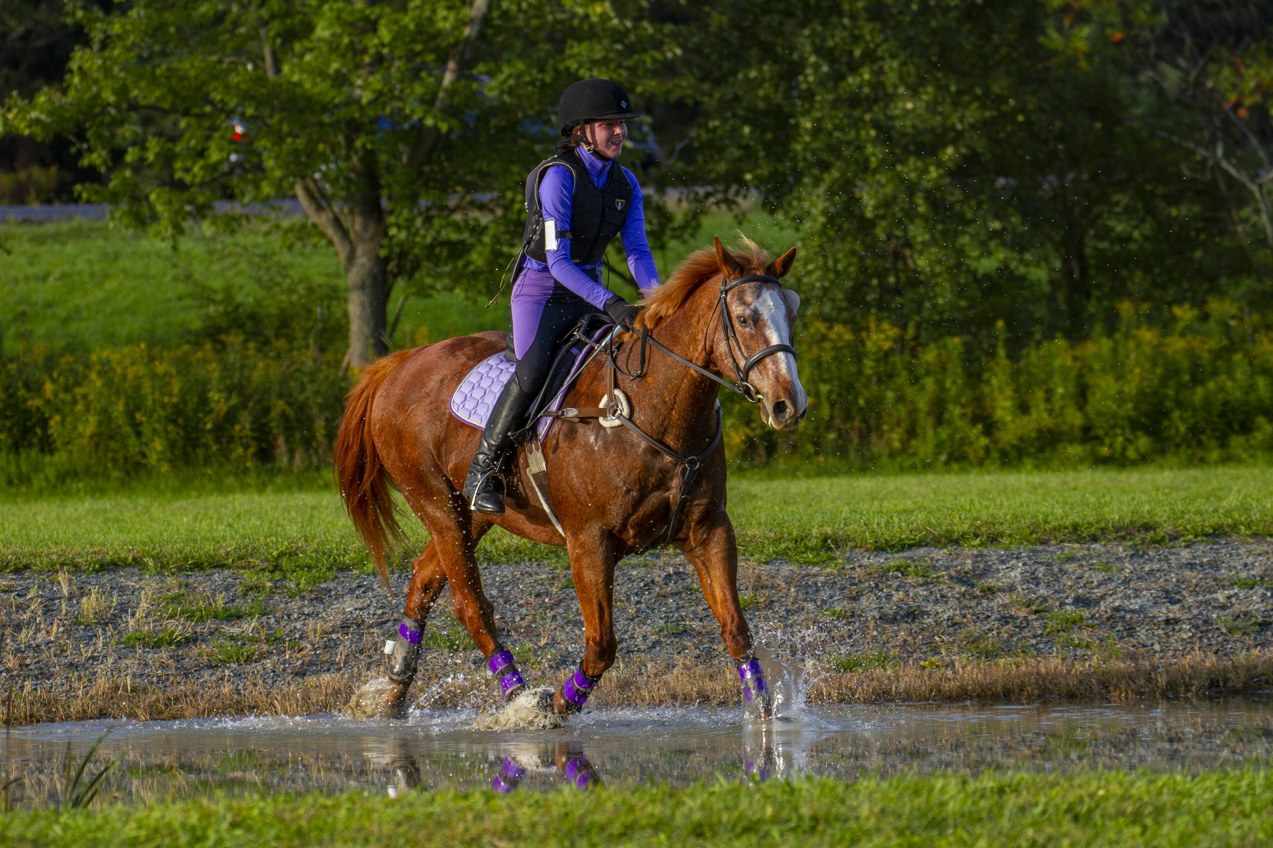 “My name is Peanut Butter, but my friends call me Peanut…however at horse shows I go by Jolly Gentleman because I’m a really nice guy. I was so happy to be adopted from Aikendale Horse Rescue by the great people at Sky Farm! All of my friends at the horse rescue were thoroughbreds, but I’m used to that, because when I was younger I was a pony horse at Saratoga Race Track. My job was to keep the race horses calm on the way to the starting gates. I am a confidence builder for beginner riders, but I also love hunter paces, eventing and I’ve shown at the Youth Dressage Festival.”