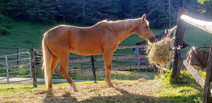 “Hi, my name is Jewel. I am the oldest equine resident at Sky Farm. During my competition career as an eventer, I competed under two names; Moment of Truth and Briar’s Jewel. I really enjoy teaching children to ride and I have a ton of experience. Did I mention that before I came to Sky Farm I was a therapeutic riding horse?”